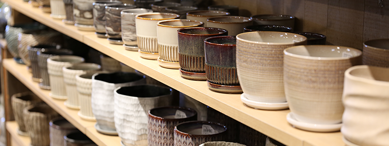 資材バイヤーKさん: 「資材は、やはり植物との相性、ビジュアル面、使用感を重視し、植物を引き立てるような名脇役的なアイテムを意識的に選んでいますね。価格帯は、中間より少し上くらいの “ちょっといいもの” 。ハイブランドのように頑張りすぎない、でもこだわりがある良いものを求める方々のニーズに応えられるものです。また、ビジュアル面では、本体の見た目だけではなく、部屋に置いた時のイメージを考えるようにしています。」