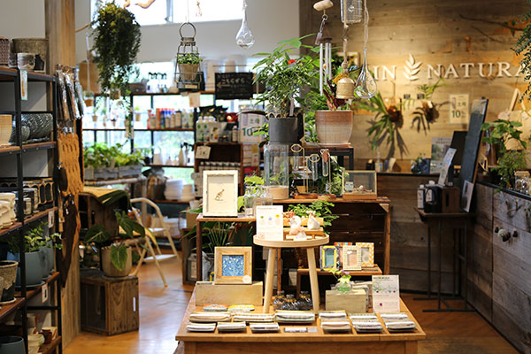IN NATURALの特徴として、植物を中心にしつつも、資材、生活雑貨、アパレルが脇役ではなく、それでいて主張しすぎずに共存している点がある。特にリアル店舗に力を入れるIN NATURALとして、各分野がどのように関わることで、店舗という空間に付加価値を生み出しているのだろうか。