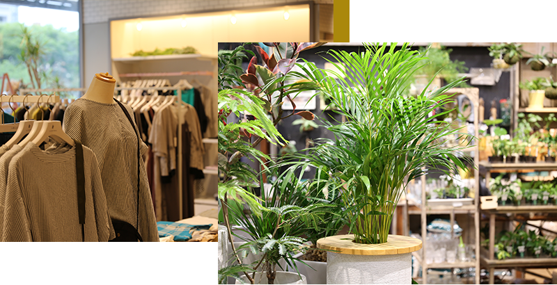 アパレルバイヤーTさん: 「私もアパレル業界からの転職ですが、ライフスタイル型のインショップという形に魅力を感じて入社しました。植物や雑貨の中にも、洋服がこれだけしっかりと置いてある店舗はあまり見たことがありません。そのアイテムを身に着けた時の暮らしをイメージできるので、アパレルだけのショップよりも洋服がより素敵に見えます。」