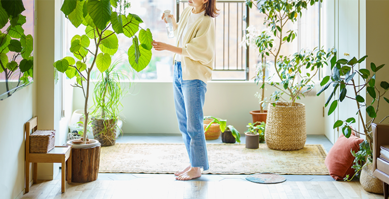 • 時間帯 根の凍結を防ぐため、気温が下がる夕方を避け、朝から昼頃に行いましょう。 • 温度 冷たすぎる水は負担になるため、常温に近い温度が理想的です。 • 葉水 室内管理では空気が乾燥しやすいため、霧吹きで葉水を行うとよいでしょう。湿度保持の他、防虫、埃の除去にも効果的です。植物ごとの冬越しポイント