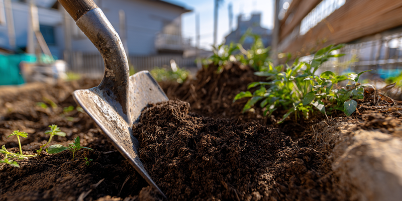 3. 土壌改良 また、植物の個性を生かすためには、根が健全に育つように土壌の状態を最適に保つことが大切です。粘土質の土壌がある場合は排水性を高めたり、砂地の場合は乾燥に気を付けるなど、現状の土壌の状態をチェックし、適切な土壌になるよう改良することが重要です。
