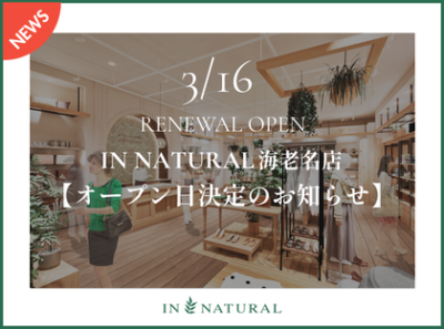 いつもインナチュラルをご愛顧いただき誠にありがとうございます。 この度、インナチュラル海老名店は2026年3月16日(月)にリニューアルオープンいたします!