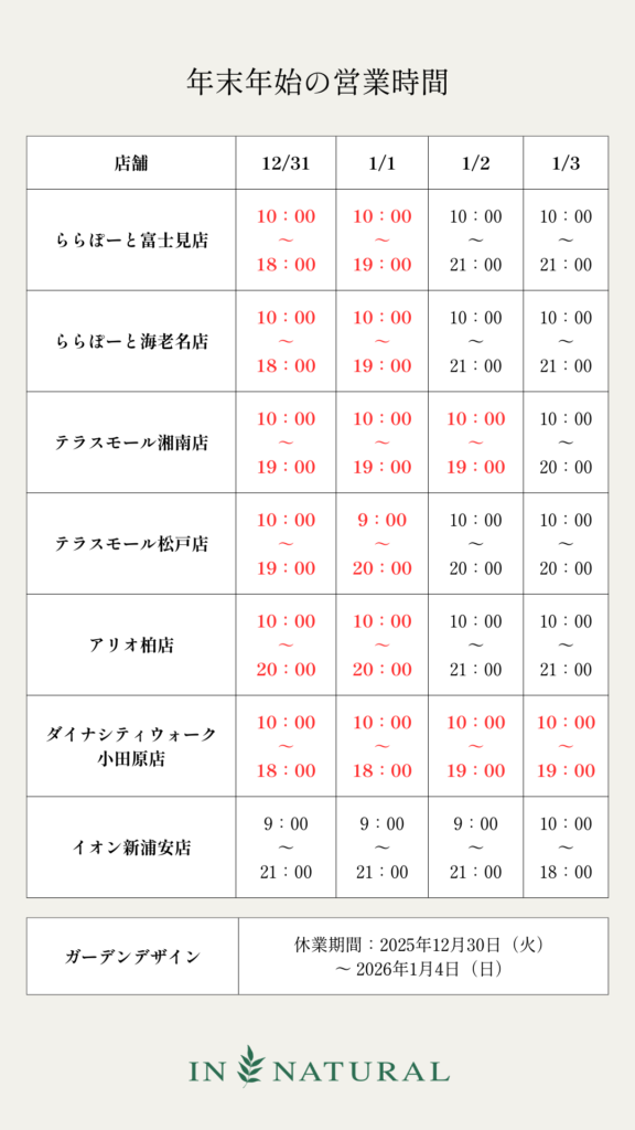 休業期間:2025年12月30日(火)~ 2026年1月4日(日
