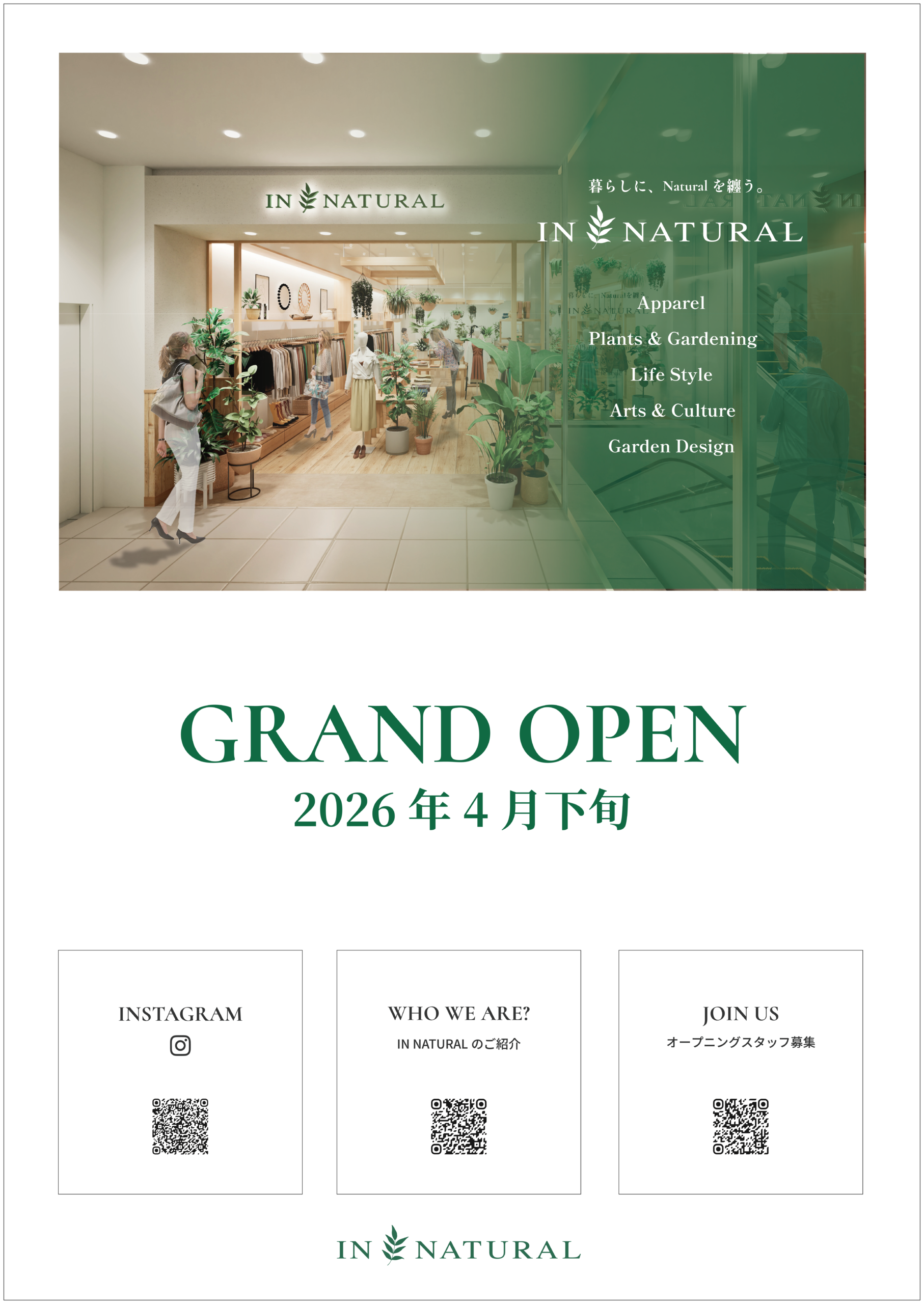 IN NATURAL > News > 【Coming Soon】2026年4月下旬、IN NATURALモザイクモール港北店オープン
