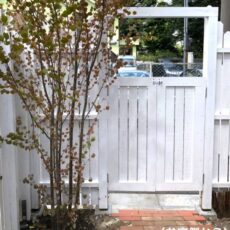 白いフェンスとカツラが彩る庭。プールやアスレチックも楽しめる遊びの拠点へ一新!
